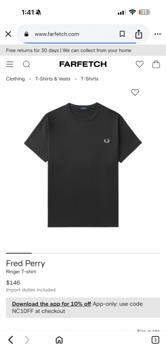Fred Perry Black Round Neck Tshirt